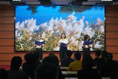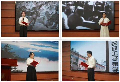 活动以红色经典诵读为主线。综合管理支部孙鹤芝、王子闰朗诵《诗颂风华》,以“问”“答”展现党的百年征程与新时代朝气;李文超诵读《青春》节选,传递李大钊先生“以青春之我创青春国家”的壮志。社会教育支部呼新娜、李海铭借《对话・红色追思》,以跨时空对话呈现革命伴侣赵世炎与夏之栩的家国情怀。信息服务支部郝翠娜、高珊、周晓宁朗诵《芦花荡》,勾勒白洋淀战火与诗意。专题服务支部王昱璐、王少云诵读《纪念刘和珍君》,诠释“猛士精神”。后勤保障支部李帮、赵若男带来《谁是最可爱的人》,缅怀志愿军的英勇事迹。