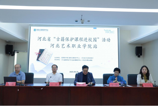 9月25日,河北省2025年度“古籍保护课程进校园”河北艺术职业学院站活动成功举办,河北省图书馆党委书记、馆长刘栋,河北艺术职业学院副院长金暄出席活动并致辞,特别邀请故宫博物院研究馆员、书画部副主任兼碑帖组组长王祎作专题报告。河北省图书馆、国家级古籍修复技艺传习中心河北传习所古籍修复人员,以及河北艺术职业学院文物保护与修复专业师生,开展了古籍保护技艺展示体验活动,河北艺术职业学院师生共计200余人参加活动。