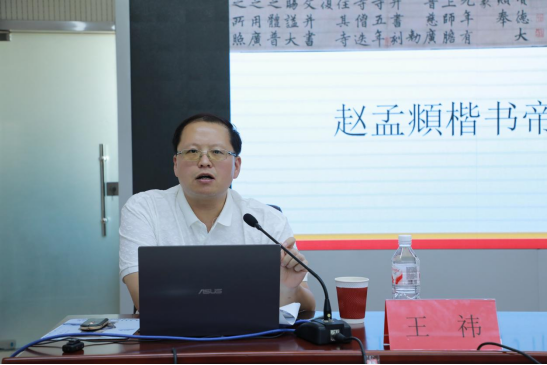 王祎老师以《元碑不出吴兴外-赵孟頫书碑浅说》为题,从元代的书碑入手,系统梳理了赵孟頫书碑相关的文献著录、碑铭拓本、传世墨迹,用深入浅出的语言,结合碑刻拓本和墨迹实例,生动地介绍了碑、贴的基本知识,解读了赵孟頫不同阶段书法艺术风格,向现场师生阐释碑帖的学术价值、艺术价值、史料价值。