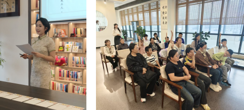 活动伊始,守正书房的阅读推广人张雨苗身着传统服饰,以深厚的文学素养与生动的表达,为在场读者揭开“典籍里的中秋秘密”。从南宋《梦粱录》中“菱花形月饼”的形制源流,到“不时不食”的节气哲学,讲师娓娓道来,将厚重的历史讲述得引人入胜。