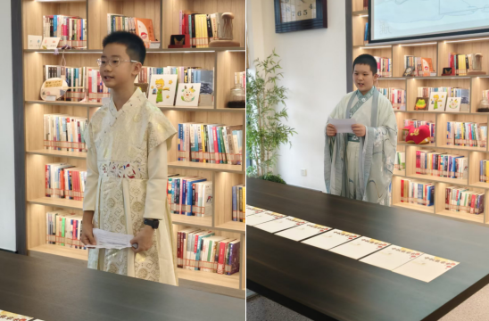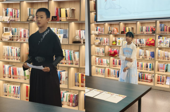 得知守正书房要办中秋主题阅读活动,四名常来参加活动的小读者主动联系工作人员,申请加入推广。他们身着古装,配合讲师用情景演绎和问答形式,把中秋饮食文化、历史典故串起来讲解。这种既有趣又有内容的讲解方式,让在场家长都夸赞:“讲得深还特有意思,连我们大人都听入迷了!
