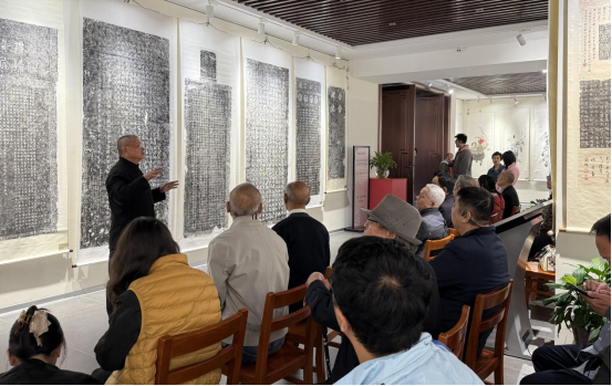 鉴赏交流分享环节,民间藏家们精心挑选了多件珍贵的拓片进行展示和讲解。其中,有“天下三大行书”美誉的《兰亭序》《祭侄文稿》《黄州寒食帖》碑拓让现场读者惊叹不已,其与石家庄的密切关系让读者自豪;白眉寨下人家藏井陉石刻一组拓片则生动展现了井陉地区碑刻的恢弘气势与精湛技艺,其碑文内容对于研究千年以来井陉地方历史和社会文化具有重要意义。藏家的精彩解读让读者深入了解这些碑帖蕴含的历史文化和它背后的故事,激发了读者对金石文化的兴趣,推动了碑帖文化和传拓技艺的活态传承。