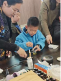 接着,赵老师开始演示润唇膏的制作过程。小朋友们排着整齐的队伍,兴奋又认真地动手操作。有的小朋友手法灵巧,做出的润唇膏竟有“镜面”效果,出色的动手能力赢得赵老师连连夸赞。
